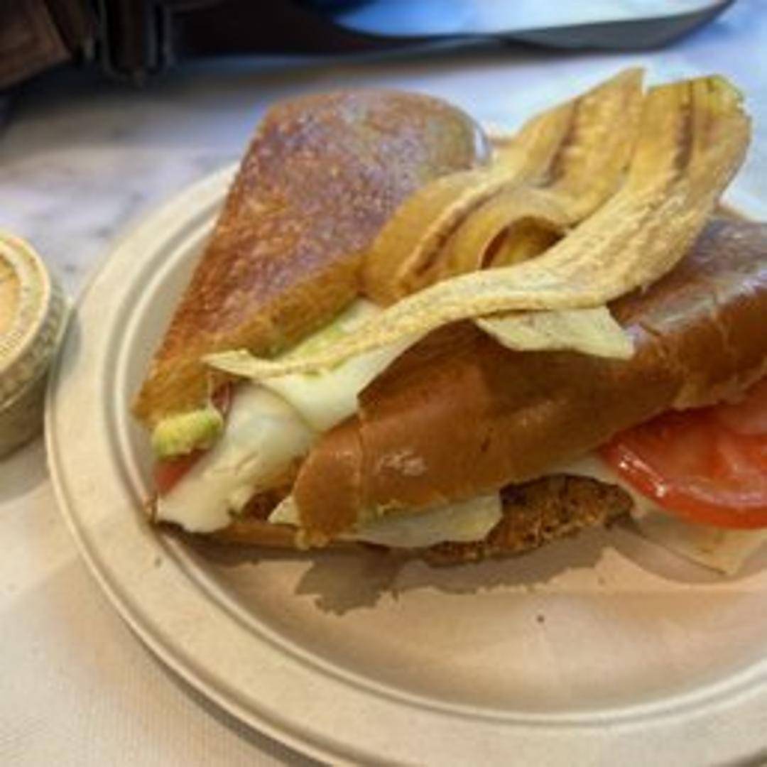 Thinly sliced, crispy banana chips layered with tender grilled chicken, creating a sweet and savory combination.