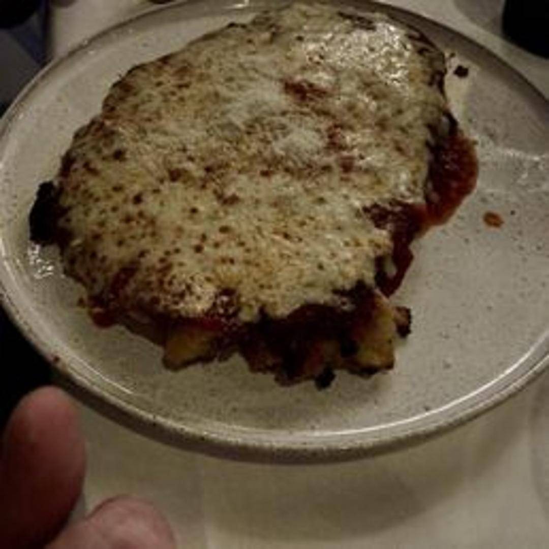 A classic Italian-American dish. Breaded chicken cutlet, topped with marinara sauce and melted mozzarella cheese. Served with a side of pasta.