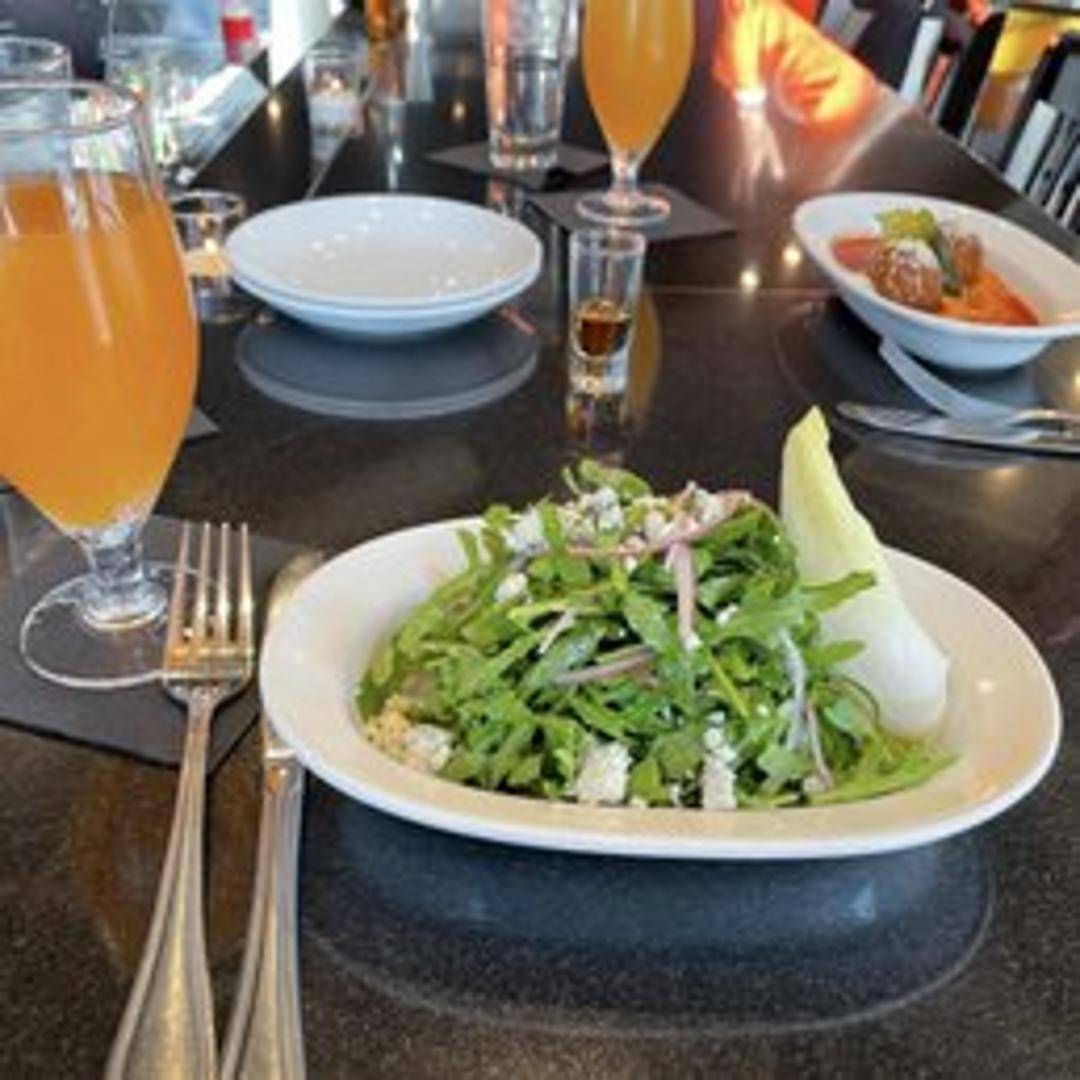 Fresh arugula tossed in a lemon vinaigrette, topped with shaved parmesan cheese and toasted pine nuts.