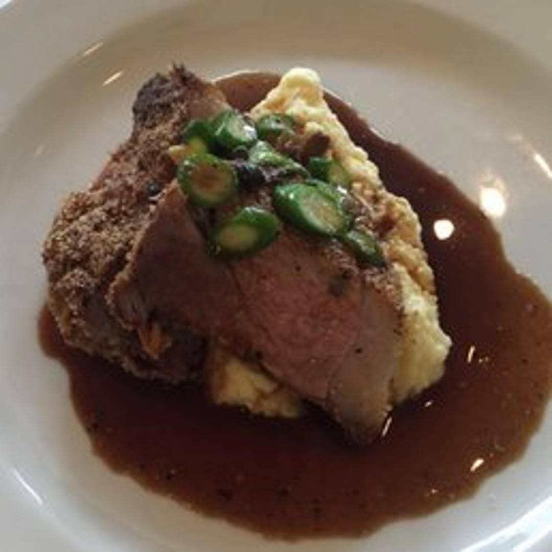 A thick-cut, expertly sourced pork chop, likely grilled or pan-seared to perfection. Expect a juicy and flavorful chop, potentially seasoned with herbs and spices complementing the natural pork flavor. May be served with seasonal accompaniments.