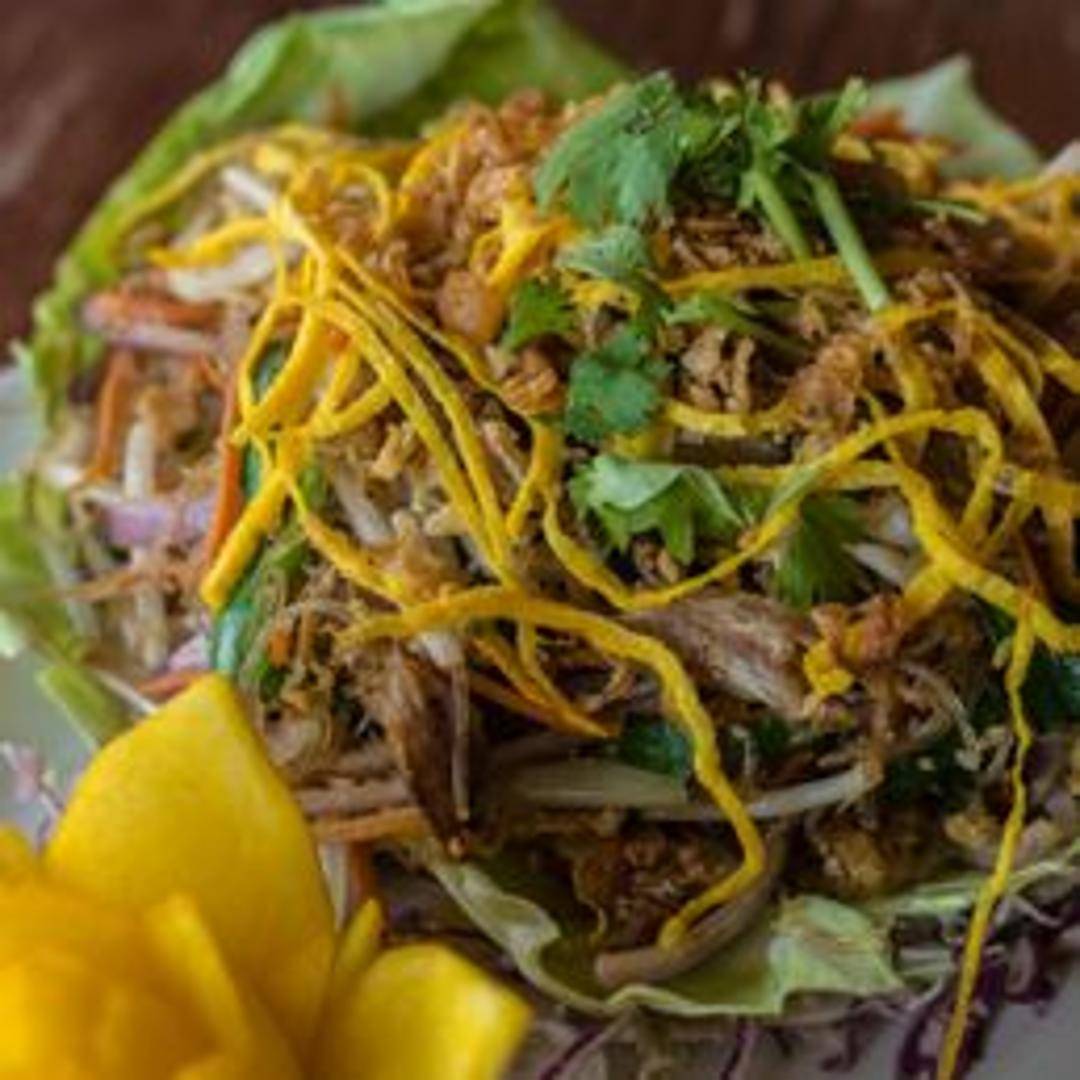 An artfully crafted culinary creation, featuring a harmonious arrangement of diverse textures and flavors. This dish is designed to tantalize the senses with its vibrant colors and intricate composition, offering a journey of taste with each bite, much like walking a path of culinary discoveries.