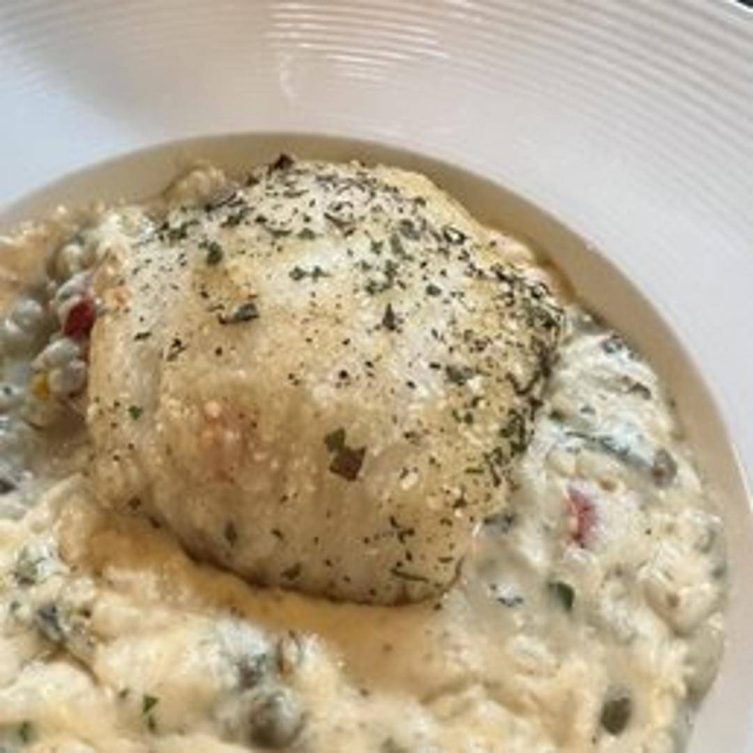 A meticulously prepared, pan-seared Chilean Sea Bass, renowned for its delicate, buttery flavor and exquisitely flaky texture. Sourced for its pristine quality, each fillet is cooked to perfection, offering a truly sublime seafood experience that melts in your mouth.