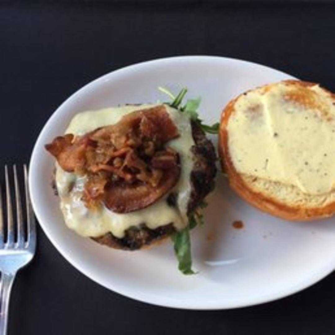 Savor our gourmet Jack Burger, featuring a premium, expertly grilled patty crafted from prime beef, topped with melted Monterey Jack cheese, crisp lettuce, ripe tomato, red onion, and a signature house sauce, all nestled in a toasted brioche bun.