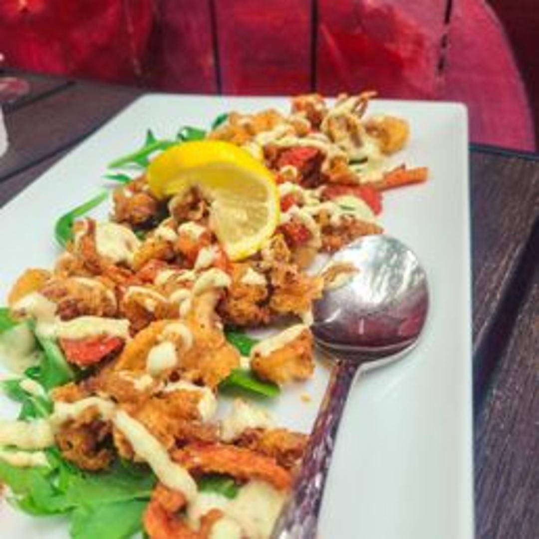 Lightly battered and perfectly fried calamari, served with [List sauces, e.g., marinara sauce and aioli]. A crispy and savory seafood starter.