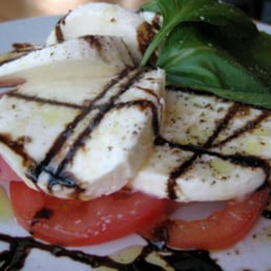 A refreshing salad featuring ripe tomatoes, fresh mozzarella slices, and fragrant basil, drizzled with a balsamic glaze and olive oil. A light and flavorful appetizer or side dish.