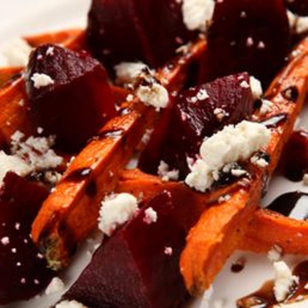 A refreshing salad featuring roasted beets and shredded carrots, tossed with a light vinaigrette. May include other seasonal vegetables and greens.