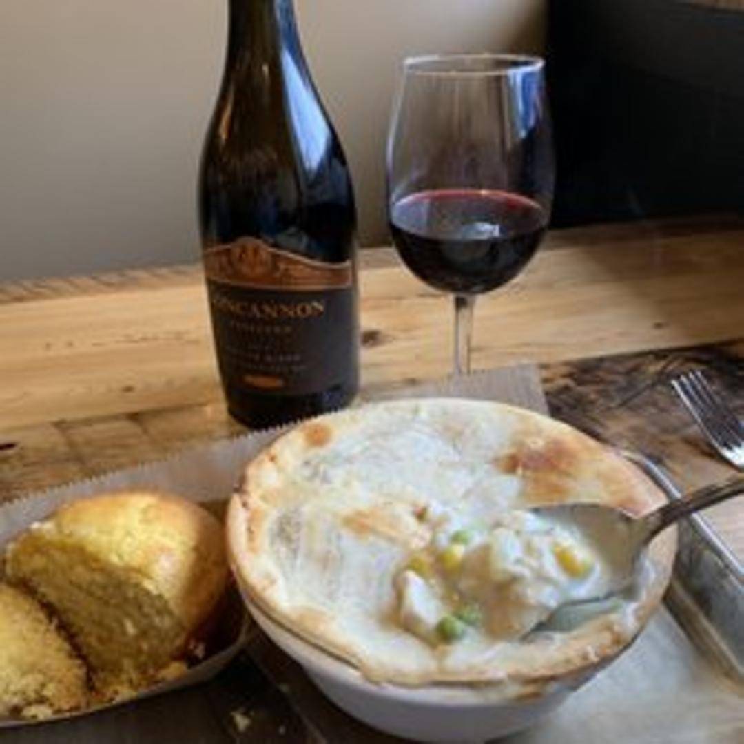 A hearty and comforting classic. Flaky, golden-brown crust filled with tender chunks of chicken, diced vegetables (peas, carrots, celery, potatoes), and a rich, creamy sauce.