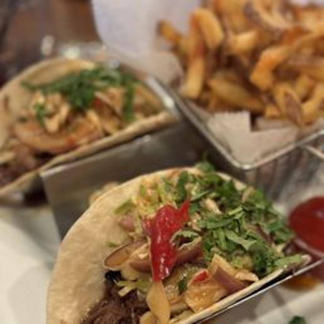 Two slow-braised short rib tacos with pickled onions, cilantro and a flavorful salsa.