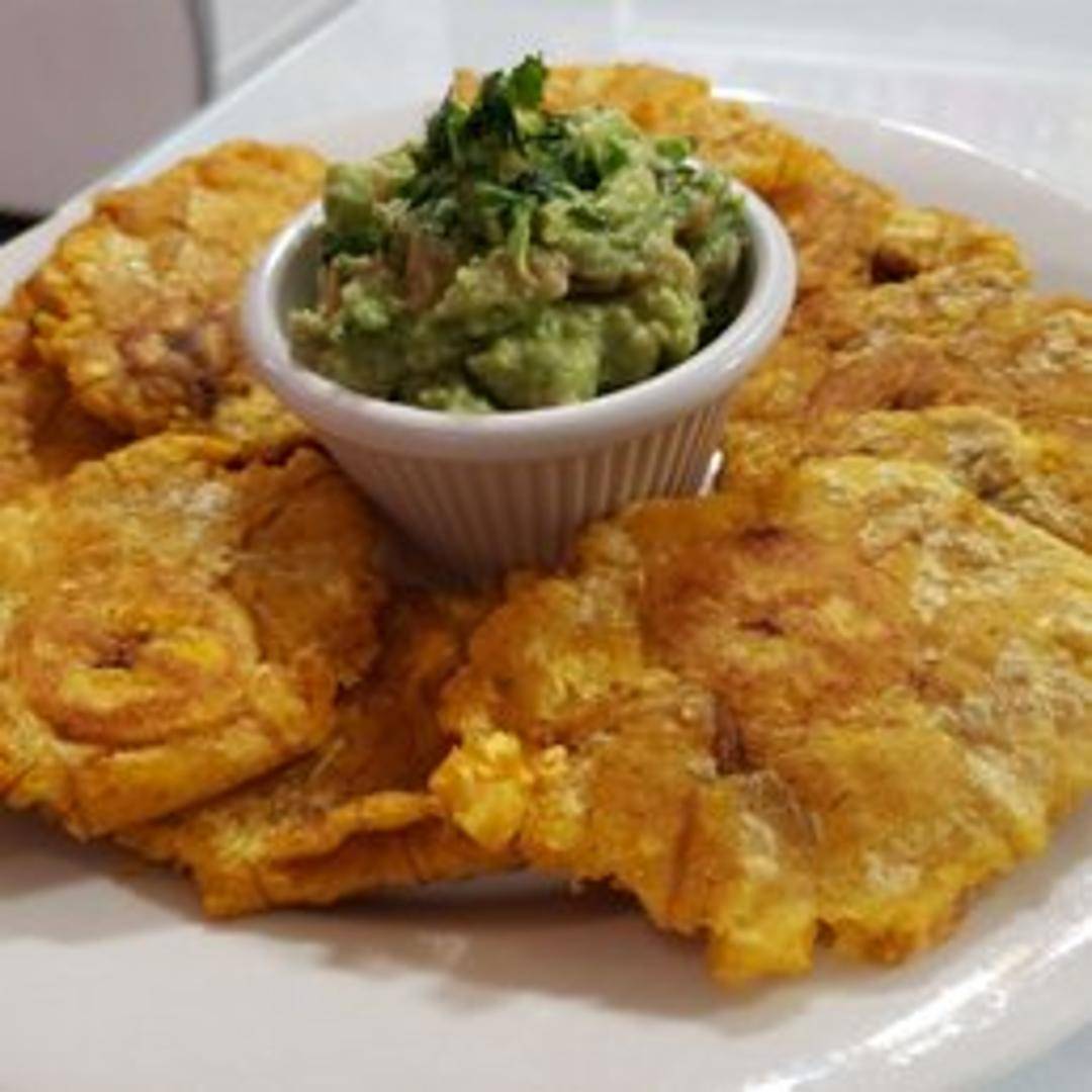 Twice-fried green plantains, crispy on the outside and soft on the inside. Served typically as a side dish.