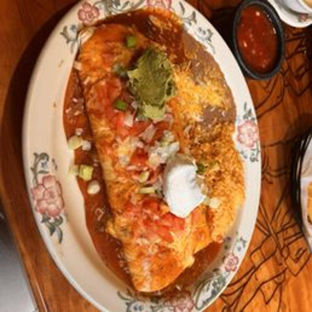 A poblano pepper stuffed with cheese, battered and fried to a golden brown. Smothered in your choice of sauce (ranchera, green chile, or queso). Served with rice and beans.