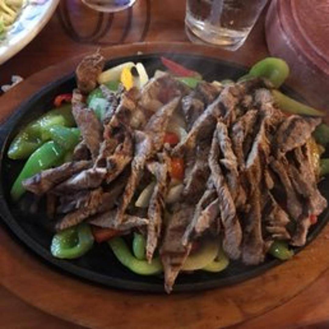 Grilled marinated steak served sizzling with sauteed bell peppers and onions. Accompanied by warm tortillas, pico de gallo, guacamole, sour cream, cheese, and rice and beans.