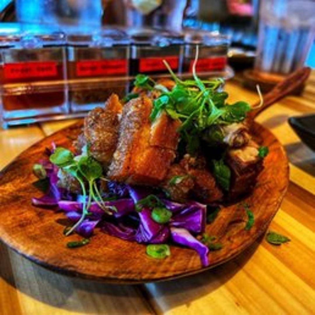 Crispy, deep-fried pork belly, perfectly seasoned and cooked to golden perfection. Served with a side of traditional dipping sauce.