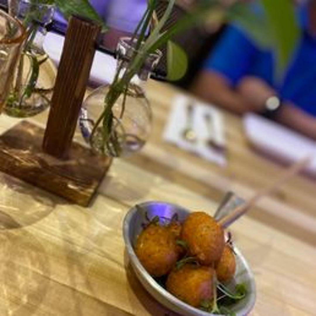 Popular Filipino street food featuring hard-boiled quail eggs coated in a bright orange batter and deep-fried until crispy and golden brown. Served with a tangy and slightly sweet vinegar dipping sauce.