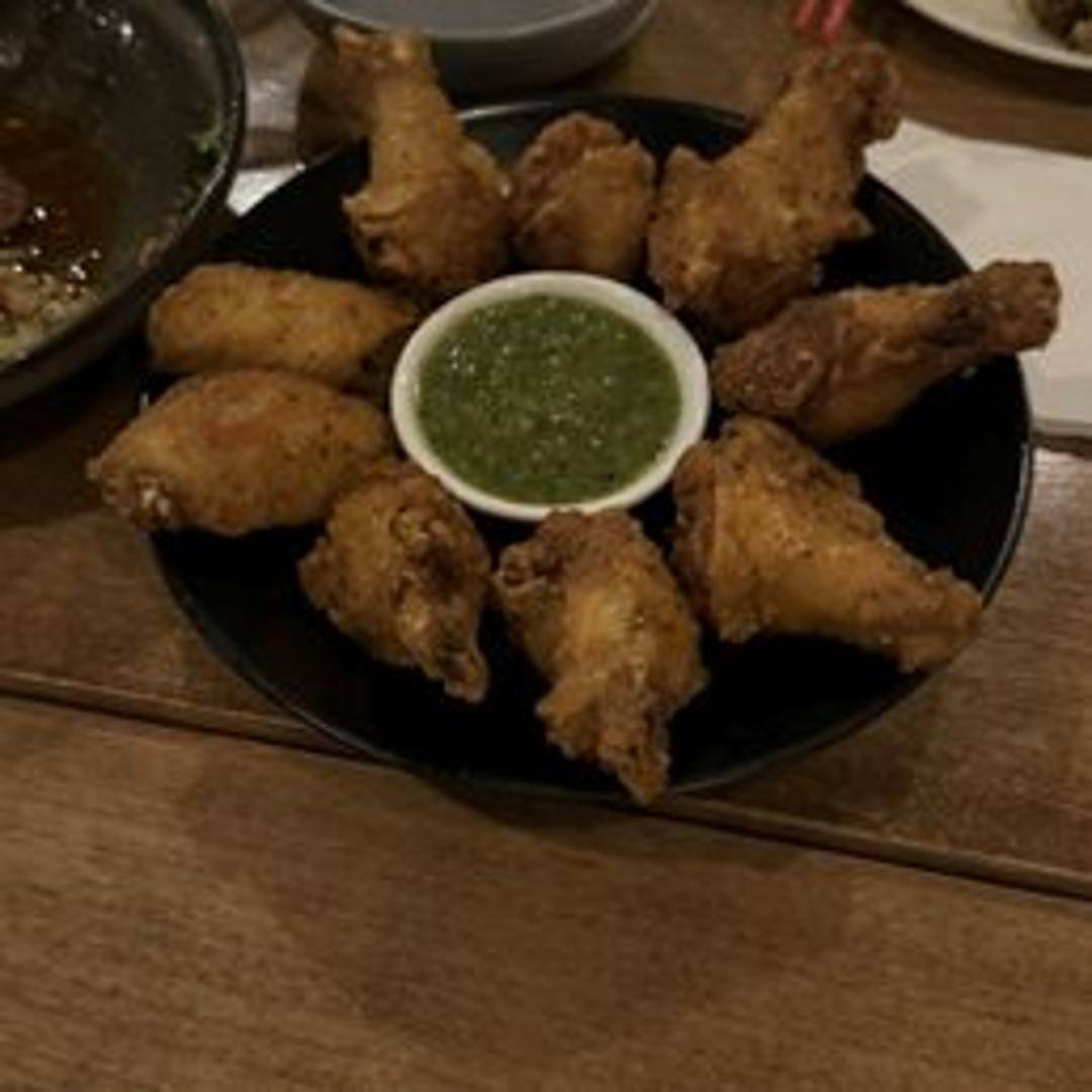 Golden-brown, crispy fried chicken wings seasoned with a blend of spices.