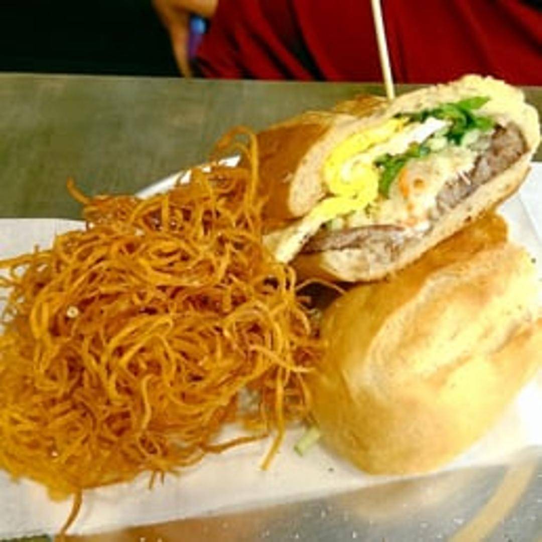 Experience the iconic flavors of Vietnam with our authentic Banh Mi. Served on a perfectly crisp baguette, this sandwich is generously filled with your choice of savory marinated protein, pickled carrots and daikon, fresh cilantro, cool cucumber slices, and spicy jalapeños, all enhanced by a delectable spread. A harmonious blend of textures and tastes.