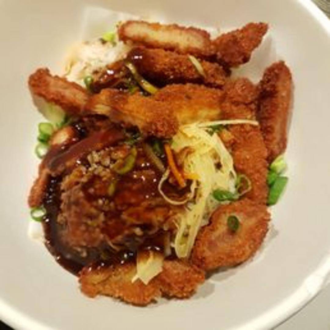 A classic Japanese comfort food featuring a succulent boneless chicken cutlet, panko-breaded and deep-fried to a beautiful golden crispness. Served with a rich, savory tonkatsu sauce that perfectly complements the tender chicken, creating a delightful harmony of textures and flavors.