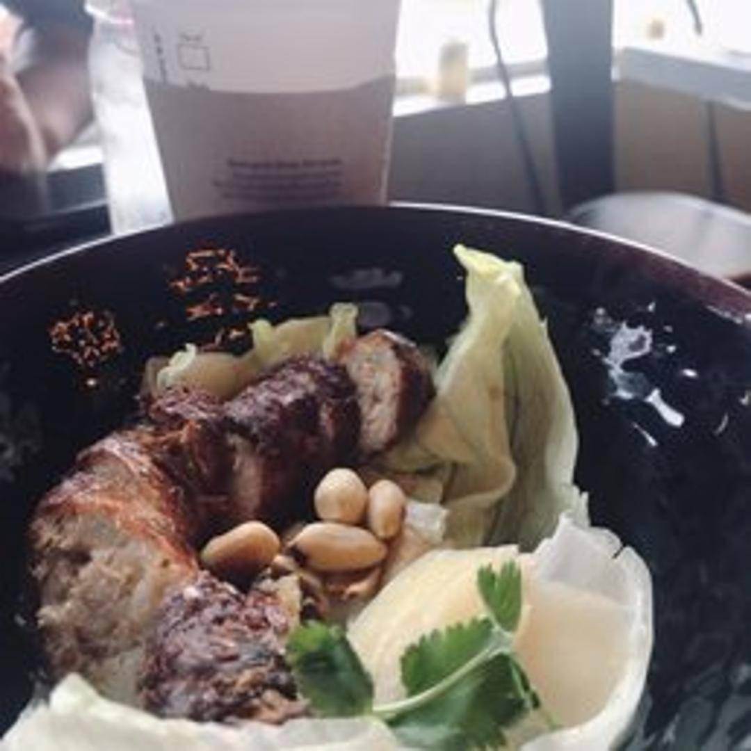 Authentic Thai sausage, crafted from seasoned ground pork, herbs, and spices, often with a distinct tangy note from traditional fermentation. This flavorful sausage is typically grilled or pan-fried until tender and aromatic, offering a unique taste of regional Thai cuisine.