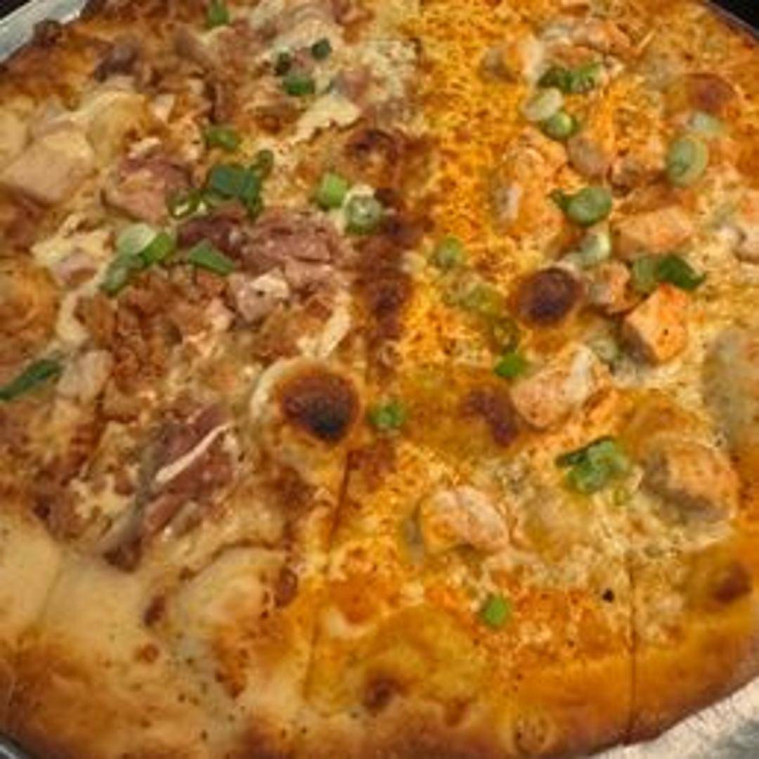 A classic flatbread piled high with spicy buffalo chicken, tangy buffalo sauce, creamy ranch dressing, and a sprinkle of fresh herbs.