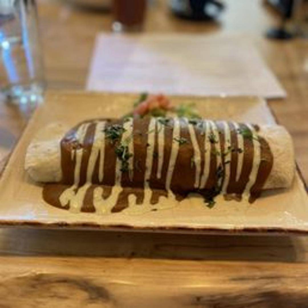 A hearty flour tortilla filled with scrambled eggs, potatoes, cheese, and your choice of bacon, sausage, or chorizo. Served with a side of salsa.