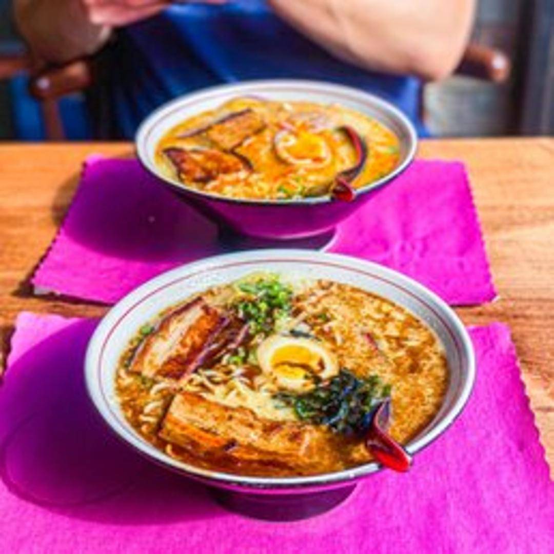 A deeply aromatic ramen distinguished by its black garlic infused oil. The broth is rich and umami-packed, paired with perfectly cooked noodles and garnished with traditional toppings like chashu pork, a soft boiled egg, bamboo shoots, and fragrant green onions.