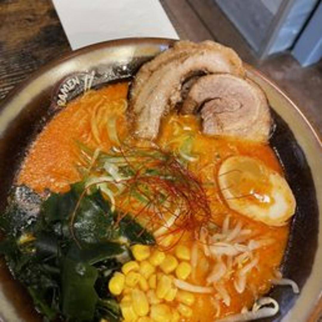 A hearty and flavorful ramen featuring a miso-based broth infused with spicy elements. This ramen typically includes signature noodles, chashu pork, a marinated soft boiled egg, seaweed, scallions, and other traditional toppings. The miso broth is carefully balanced with a blend of spices to provide a satisfying kick and warmth.