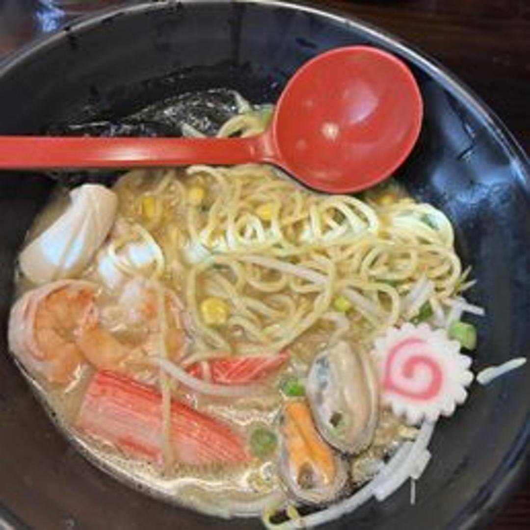 Ramen noodles in a flavorful broth, featuring a variety of seafood such as shrimp, squid, mussels, and crab. Often garnished with seaweed and green onions.