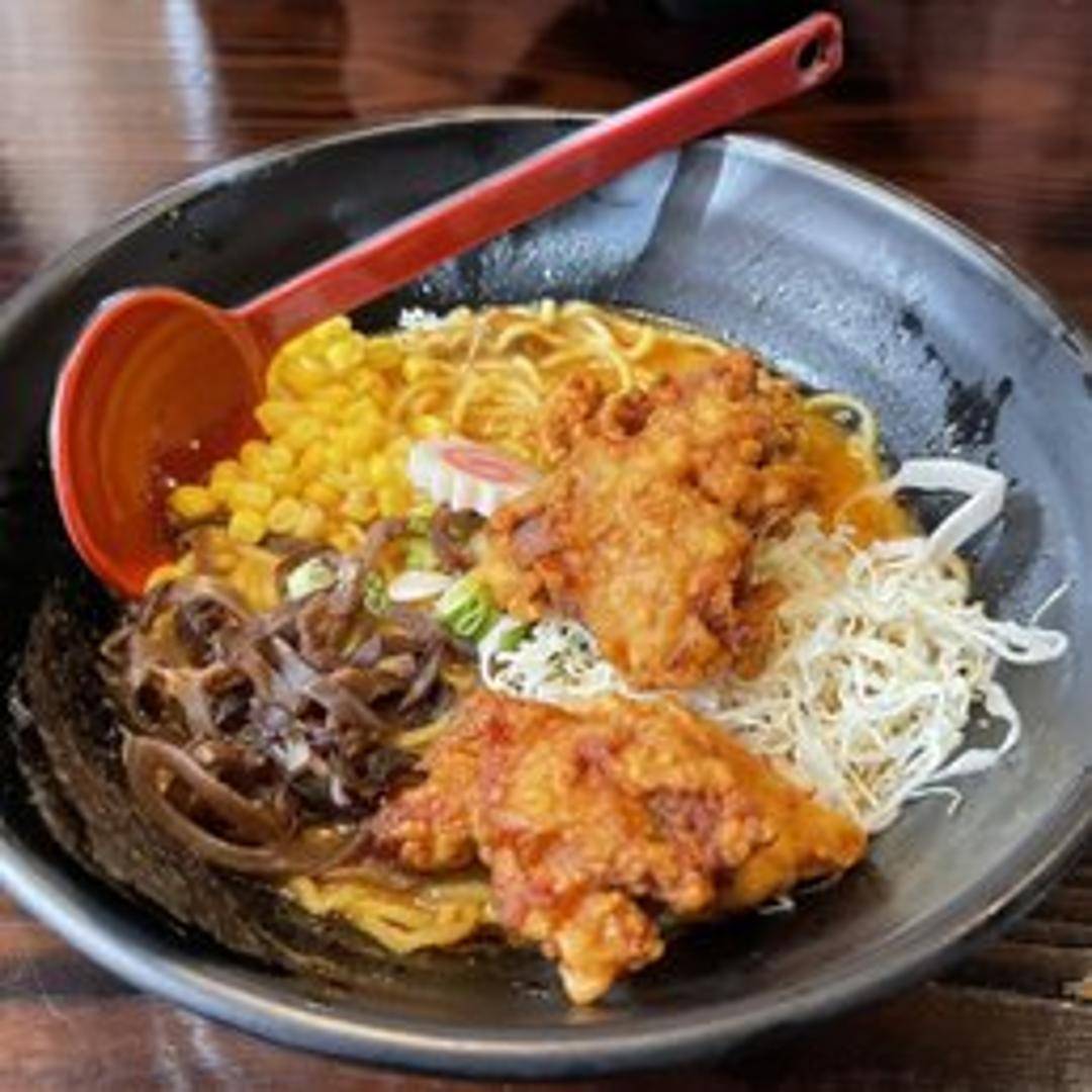 Ramen noodles served in a rich and aromatic Japanese curry broth, often featuring toppings like sliced pork, vegetables, and a soft-boiled egg.