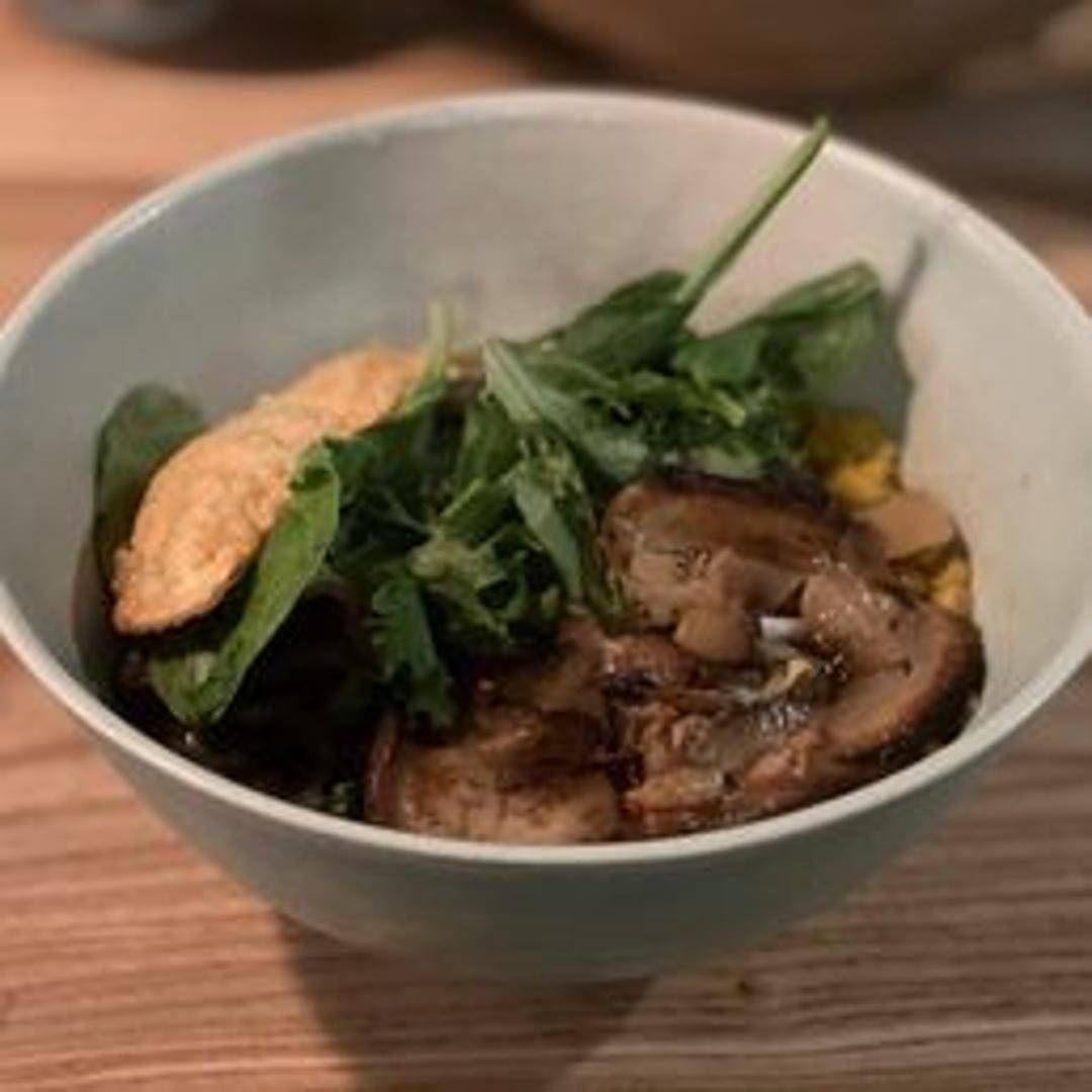 Classic Japanese ramen featuring a rich, savory broth seasoned with soy sauce (shoyu). Served with wheat noodles, tender slices of chashu pork, marinated bamboo shoots (menma), nori seaweed, and a soft boiled egg.