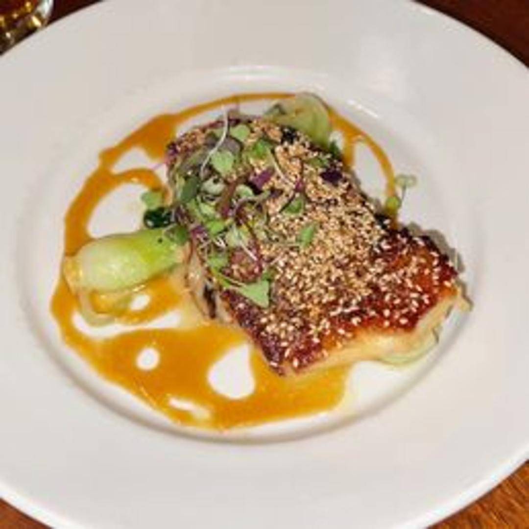 Flaky, tender Chilean Sea Bass, perfectly marinated in a savory-sweet miso glaze, then expertly cooked to achieve a caramelized exterior and succulent interior, offering a rich umami experience.