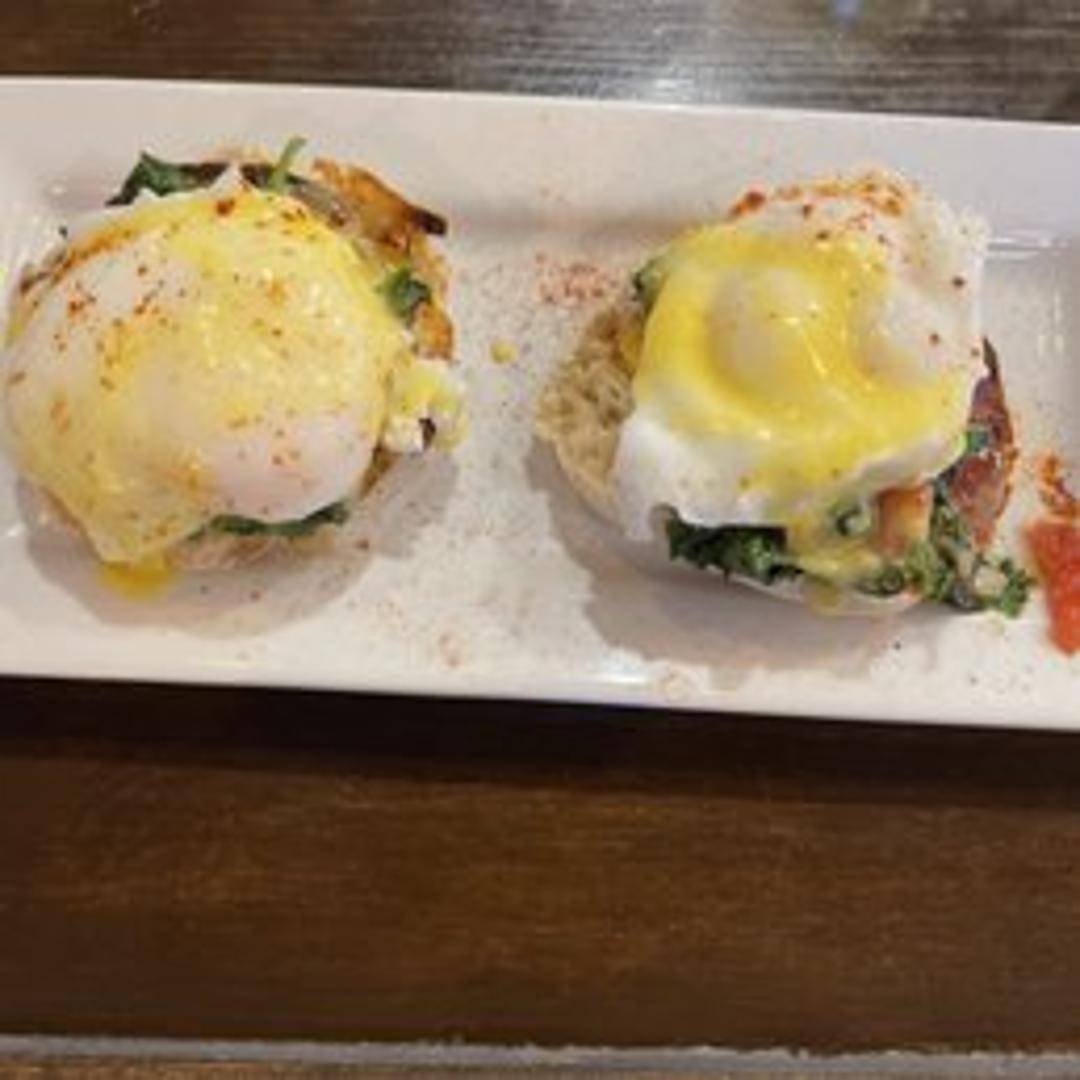 Indulge in a brunch favorite, our Eggs Benedict. Enjoy two perfectly poached eggs, tender Canadian bacon, and rich, velvety hollandaise sauce, all served atop toasted English muffins. A decadent start to your day or a delightful anytime treat.