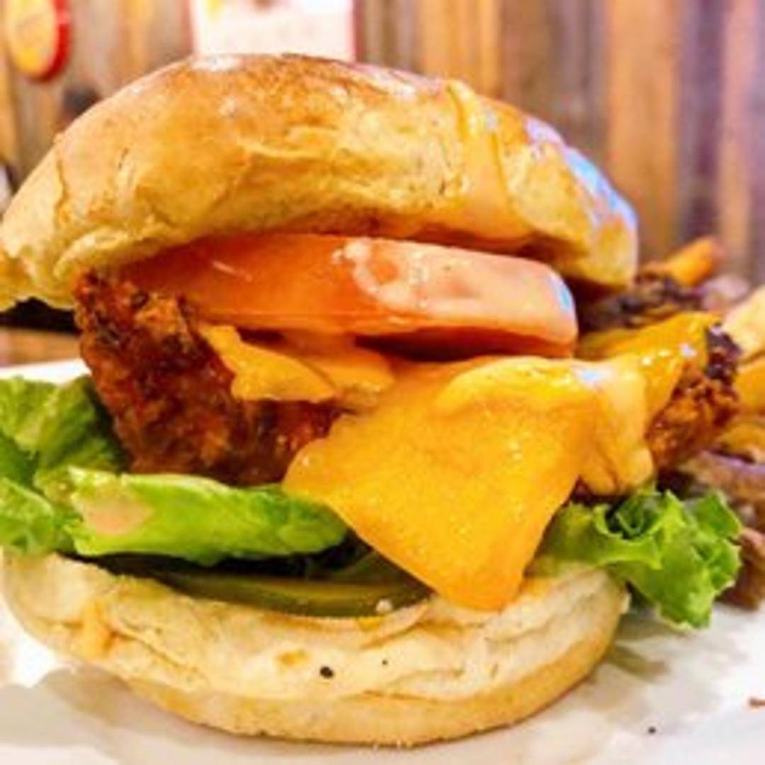 A classic tavern favorite featuring a perfectly seasoned and crispy fried chicken breast, served on a toasted brioche bun with crisp lettuce, ripe tomato, tangy pickles, and a generous slather of Rascals' signature house sauce. A satisfying and flavorful choice for any time of day.