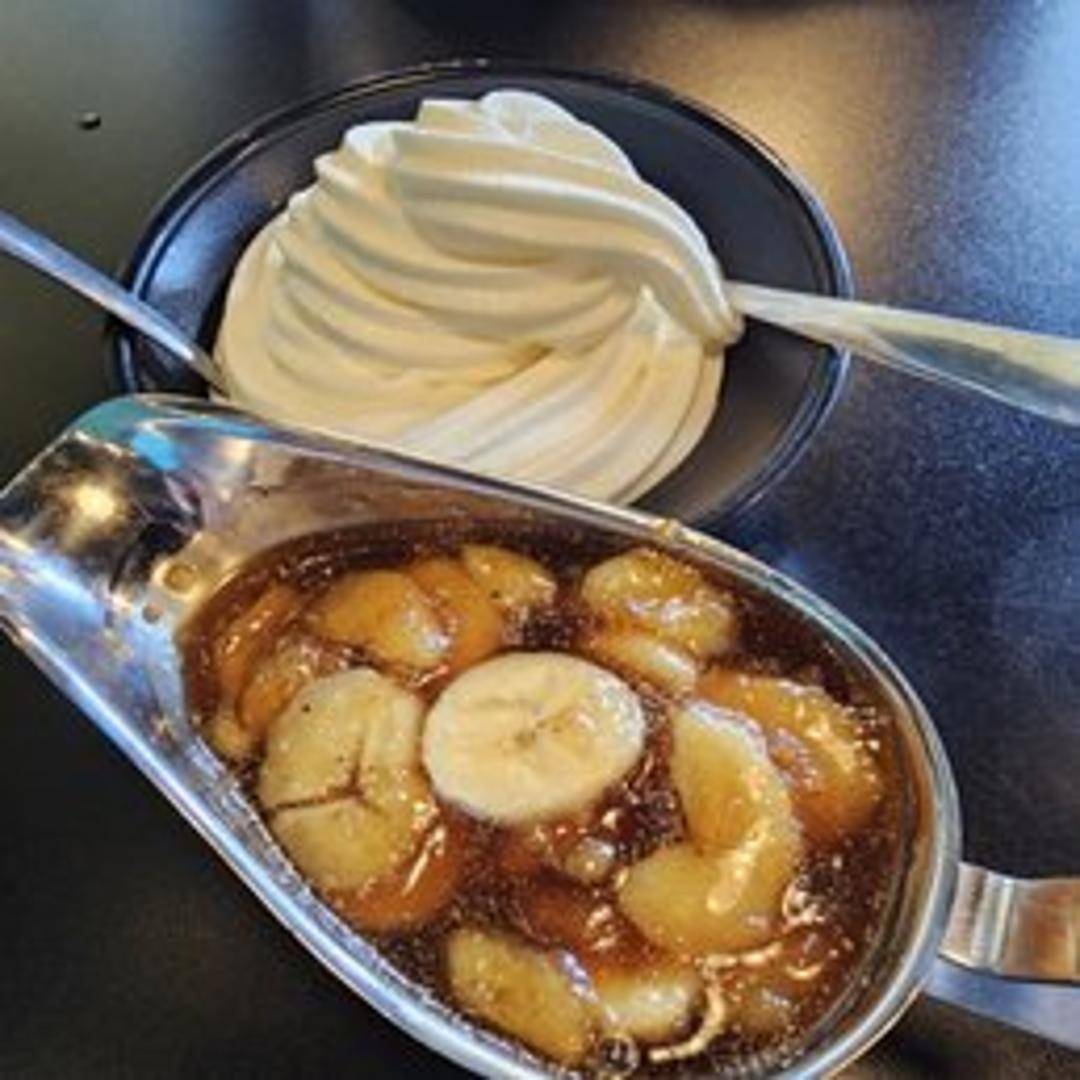Sweet plantains, caramelized and flambéed. Drizzled with a rum-infused caramel sauce and served with a scoop of vanilla ice cream.