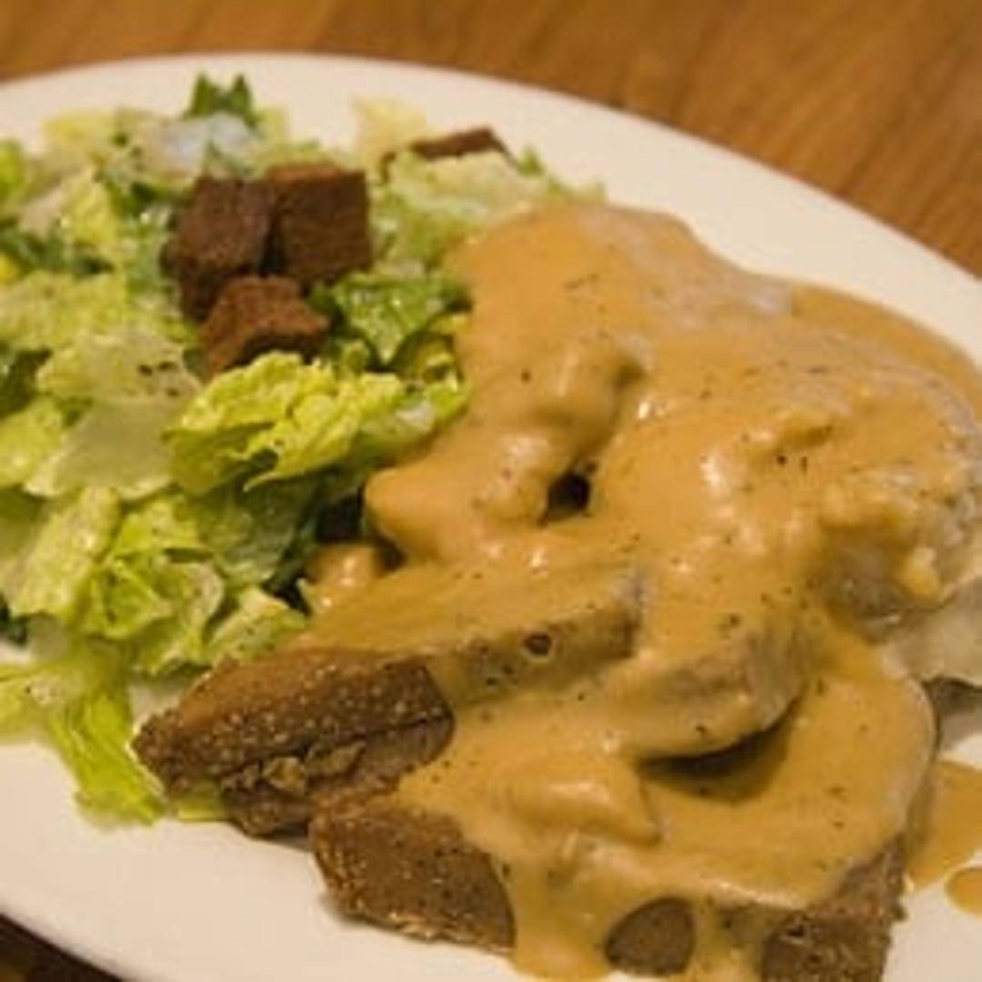 A plant-based take on a classic comfort food, featuring seasoned seitan patties smothered in a rich and savory mushroom gravy. Served with a side of mashed potatoes or other complimentary sides, this dish offers a hearty and satisfying meal that is both delicious and cruelty-free.