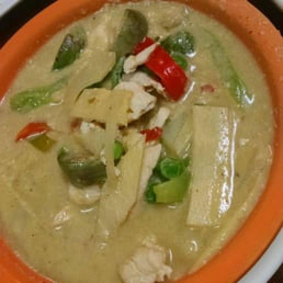 A spicy and flavorful coconut milk-based curry with bamboo shoots, bell peppers, eggplant, basil, and your choice of protein.