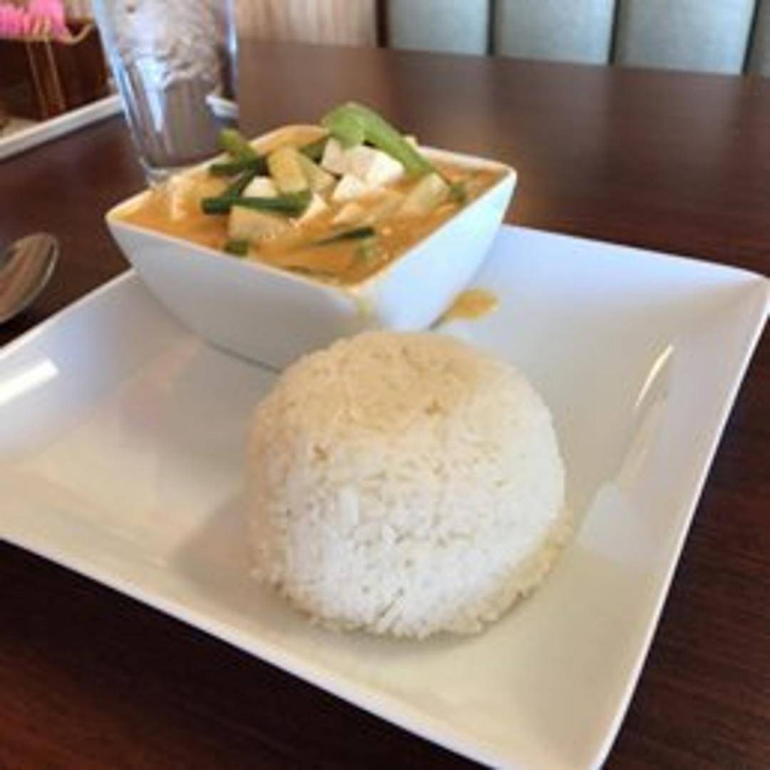 A flavorful curry cooked with coconut milk, pineapple chunks, bell peppers, and your choice of protein.