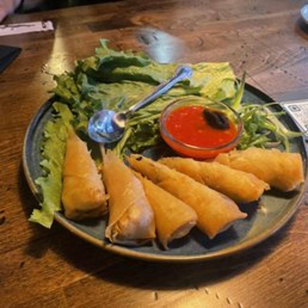 Crispy egg rolls filled with savory duck meat and vegetables.