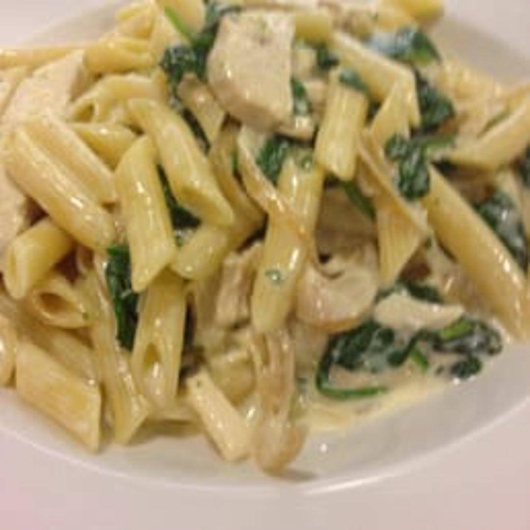 Penne pasta tossed in a creamy spinach and artichoke sauce, finished with parmesan cheese and a sprinkle of red pepper flakes.