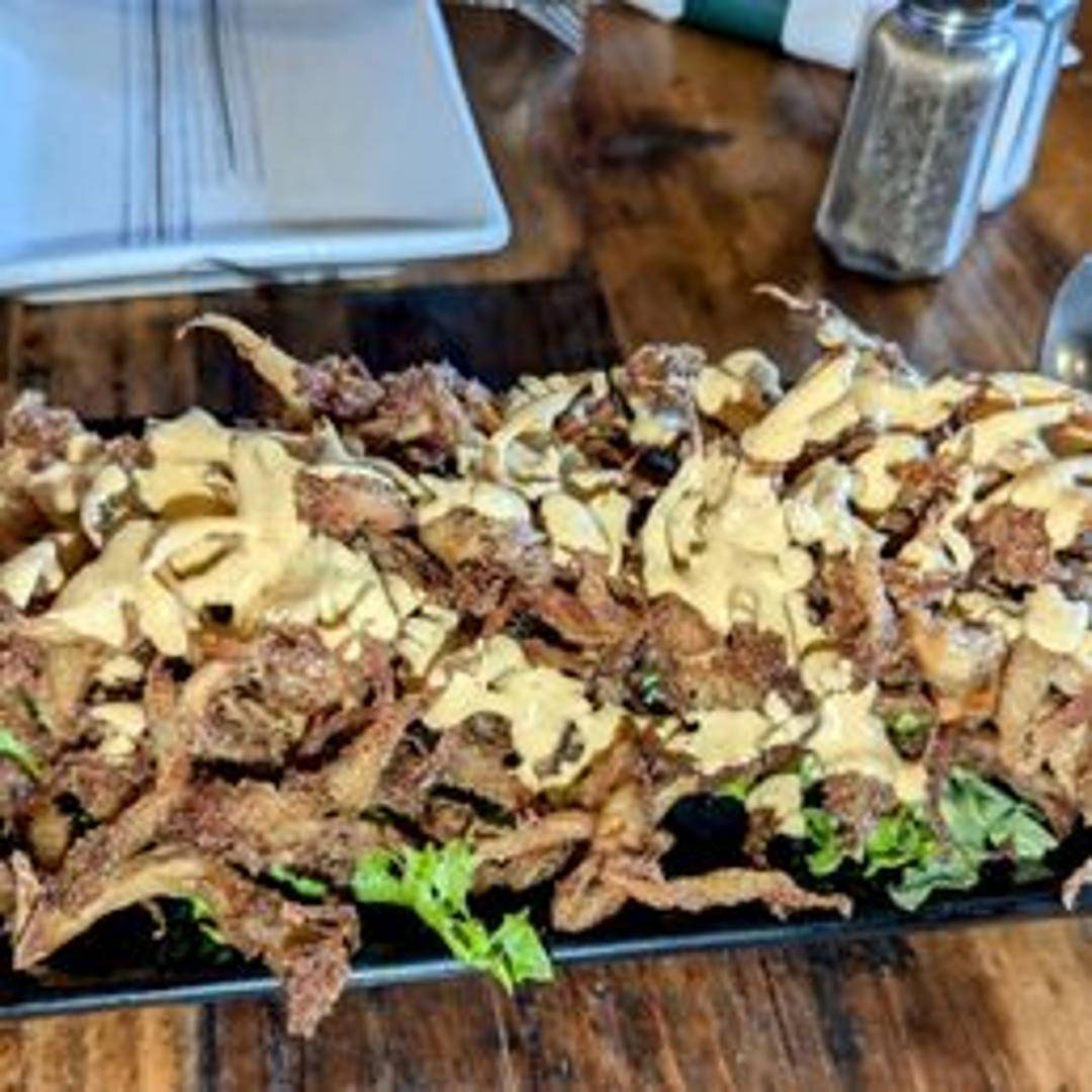 Delicate oyster mushrooms, lightly battered and fried to a crispy, golden brown. The texture mimics calamari, offering a satisfying and flavorful appetizer. Served with a lemon-garlic aioli.