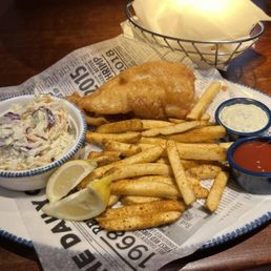 Crispy-fried, battered cod fillets served with tartar sauce and French fries.