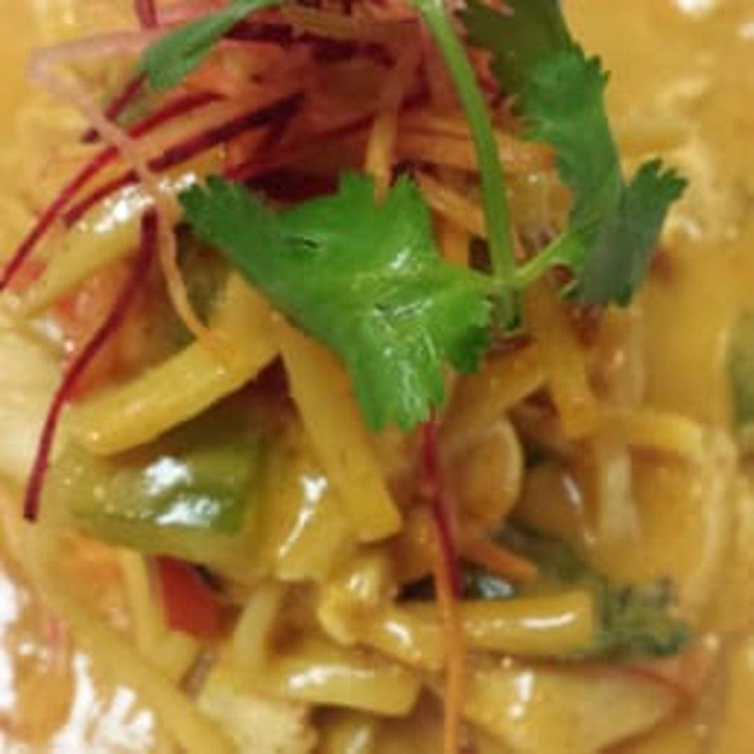 A rich and flavorful red curry with coconut milk, bamboo shoots, bell peppers, and basil leaves. Choose your preferred protein. Served with a side of steamed jasmine rice.