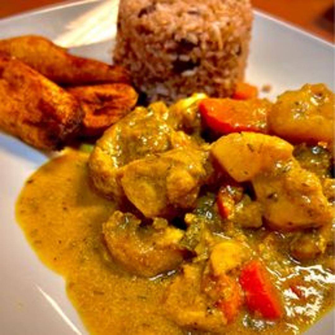 Tender chicken pieces simmered in a rich and aromatic curry sauce. The curry is made with a blend of traditional spices like turmeric, cumin, coriander, and scotch bonnet peppers, creating a comforting and flavorful dish.