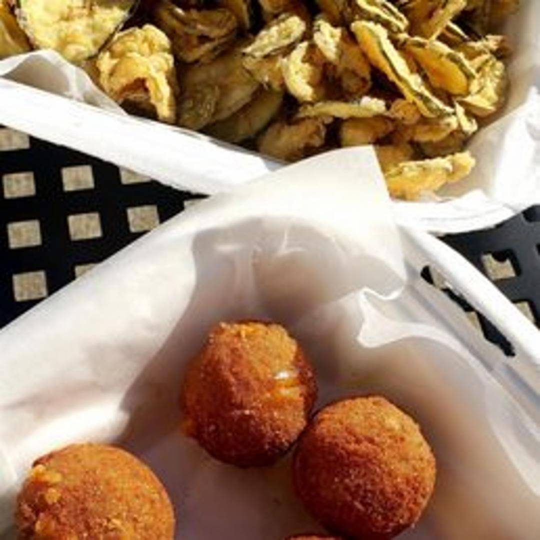 Experience a true Southern delight with our crispy Pimento Cheese Fritters. These golden-fried bites are filled with our house-made, creamy pimento cheese blend, featuring sharp cheddar, piquant roasted red peppers, and a touch of secret seasoning. Each fritter boasts a perfectly crisp exterior that yields to a warm, gooey, and flavorful center, served with a complementary dipping sauce for an irresistible appetizer.