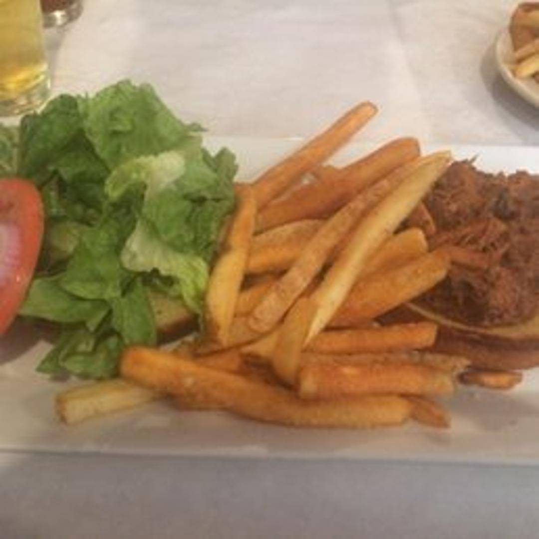 Tender, slow-smoked pulled pork piled high on a toasted bun, served with your choice of BBQ sauce and coleslaw.