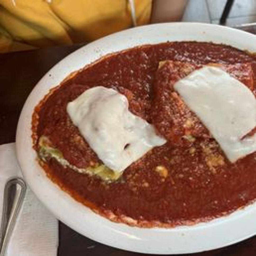 Classic Italian baked pasta dish with layers of pasta, ricotta cheese, ground meat (beef and/or pork), marinara sauce, and melted mozzarella cheese.
