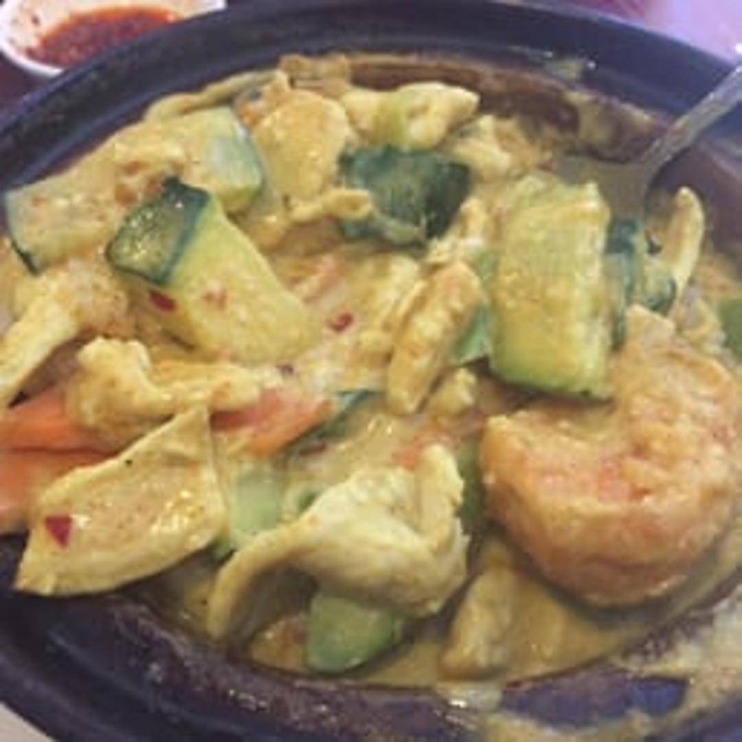 A hearty casserole featuring a creamy curry sauce with tender chunks of your choice of protein (chicken, beef, pork, shrimp, or tofu) and a medley of vegetables, baked until golden brown and bubbly. Served over a bed of steamed rice.