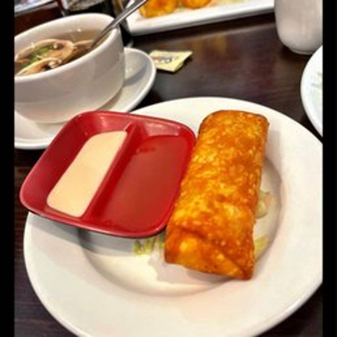 Crispy fried egg roll filled with shredded cabbage, carrots, celery, and other savory fillings. Served with a sweet chili dipping sauce.