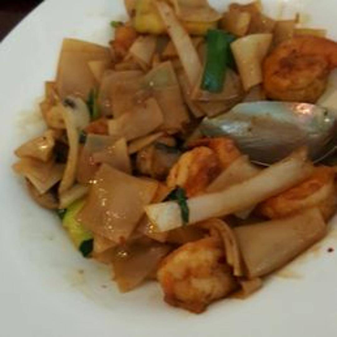 Wide rice noodles stir-fried with your choice of protein (chicken, beef, pork, shrimp, or tofu), tomatoes, onions, bell peppers, basil, and a spicy garlic chili sauce. Bold and flavorful with a hint of sweetness.
