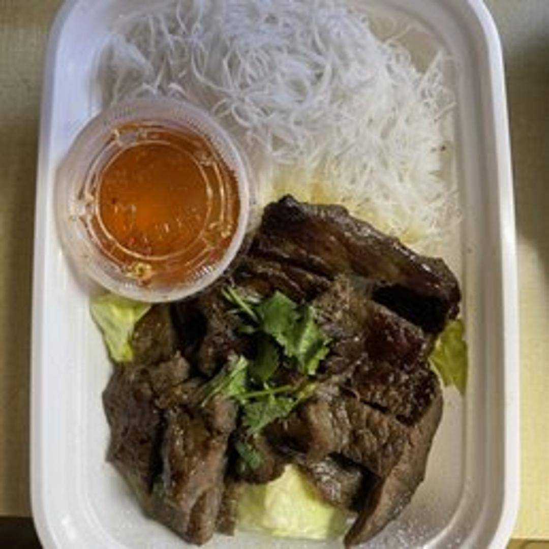 Grilled marinated beef served with a flavorful dipping sauce. Tender and smoky, with a hint of sweetness and savory spices.