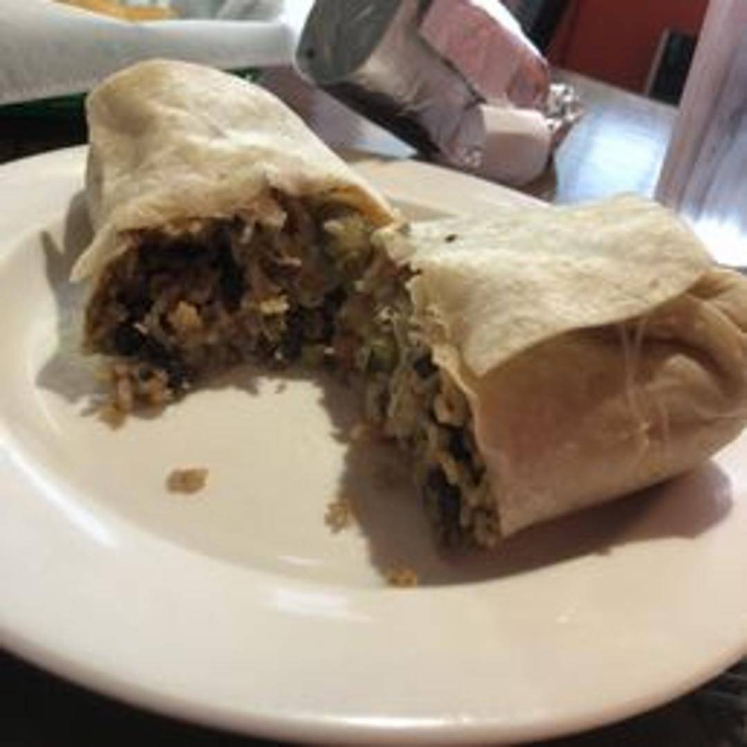 Slow-braised, flavorful, and juicy pulled pork (carnitas) wrapped in a large flour tortilla with rice, refried beans, cheese, and your choice of salsa.