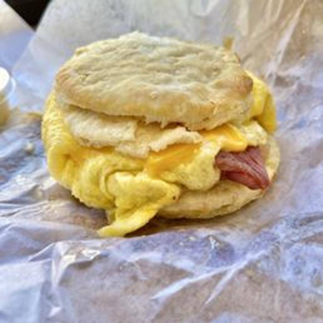 A hearty biscuit sandwich comprised of [Specific ingredients included in the Goldsboro sandwich, e.g., sausage, egg, and cheese].